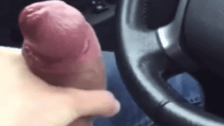 Man wanks and cums his big thick cock in car